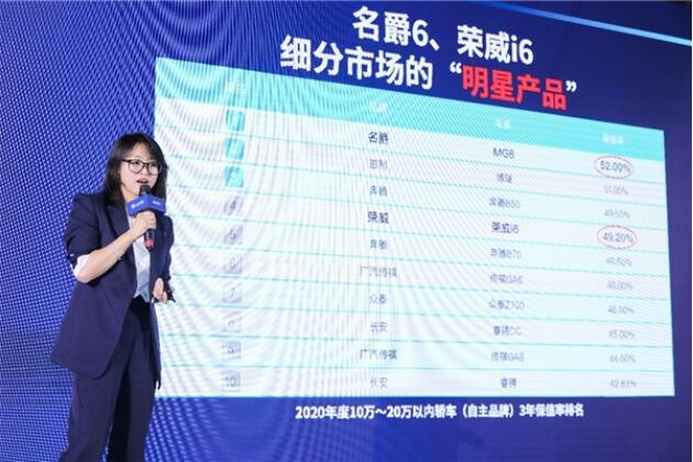 隨后,精真估市場副總裁崔璨發布了《上汽乘用車2020年品牌保值率報告》。從報告數據顯示,汽車市場高速增長不復存在,產品差異逐漸縮小,同質化變得越來越嚴重,導致廠家以價換量提升市占率。因此市場需求所在,提出了新的維度解決方案,比如對保值率體系的管理,從而穩定。可以看出,在1-5年保值率細分段上, 相比2019年,上汽乘用車兩大汽車品牌榮威和名爵的保值率都有明顯提升。崔璨表示,榮威和名爵的保值率上升,與上汽認證二手車通過提升服務質量、品質保障、品牌宣傳等因素建立自身的保值率體系全面管理,是密不可分的,最終達到品牌健康發展的核心目的。