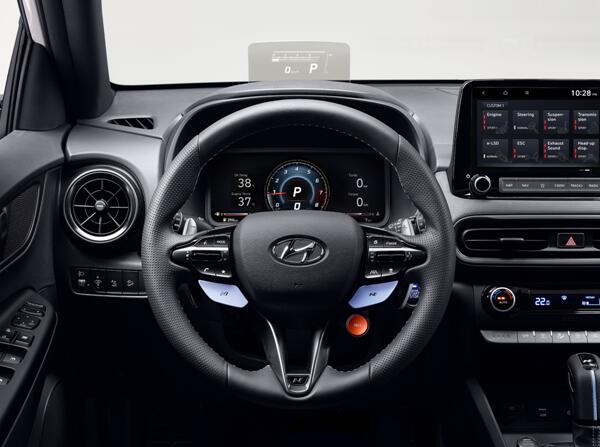 KONA N搭載了10英寸顯示屏和抬頭顯示器(HUD),同時匹配N品牌專用圖形界面,打造出仿佛置身于游戲的沉浸式體驗,為駕駛增添趣味性。