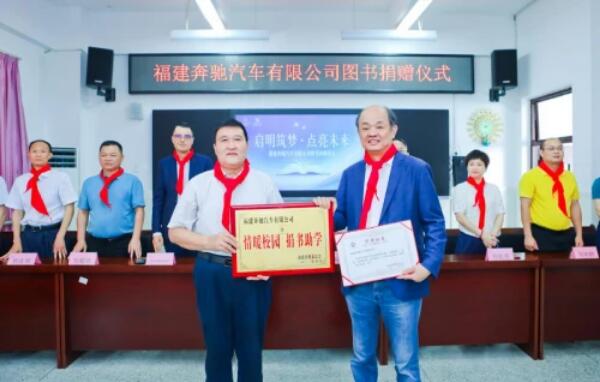 隨后的捐贈(zèng)儀式上,福建奔馳副總裁兼首席財(cái)務(wù)官尊龍分別向三所小學(xué)捐贈(zèng)了愛(ài)心圖書(shū)及圖書(shū)柜。同時(shí),福建省慈善總會(huì)向福建奔馳對(duì)慈善事業(yè)所作的貢獻(xiàn)表示衷心感謝,并授予愛(ài)心牌匾。