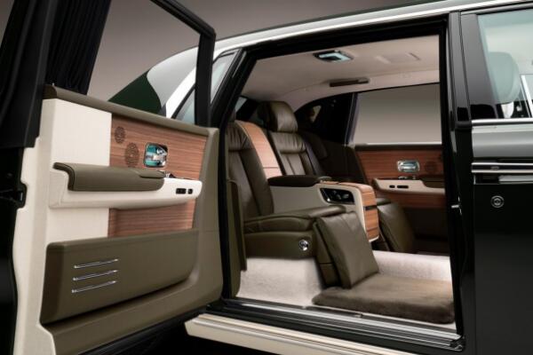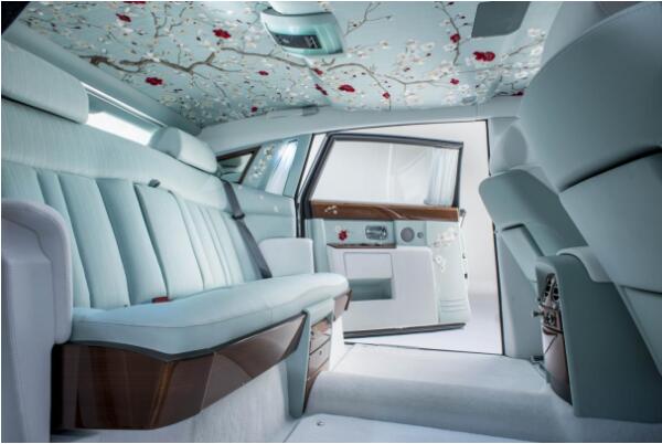 勞斯萊斯為2015 年日內(nèi)瓦國際車展打造了一款華麗耀目的第七代幻影Bespoke高級定制版車型。這款第七代幻影靈感源自20世紀(jì)早期為國際知名皇室締造的奢華汽車,后排座椅采用獨特的煙綠色生絲制成,獨具一格的手工編織、手工刺繡和手工繪制的中國風(fēng)花朵圖案點綴其中,內(nèi)飾耗時長達 600 小時。這項設(shè)計也在后方車門飾板和鑲嵌裝飾也有所體現(xiàn)。煙熏櫻桃木和竹元素與日式花園中傾斜的礫石相互呼應(yīng),營造了車內(nèi)靜謐自然的氛圍。 伴隨著第七代幻影的問世,貝殼面漆也首次亮相,貝殼面漆也是勞斯萊斯品牌有史以來生產(chǎn)最復(fù)雜、最昂貴的產(chǎn)品。