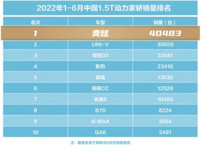 【 乘聯會數據顯示:奕炫家族在中國1.5T家轎銷量排名第一 】