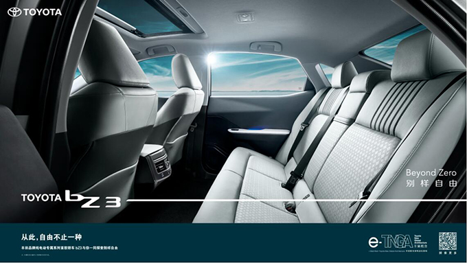 在“動”方面,bZ3采用豐田e-TNGA架構,擁有更低的重心、更好的穩定性,依托豐田在過去數十年在造車和賽車運動中積累的經驗,擁有特有駕乘特性,讓駕乘回到電動車真正的產品核心上,讓駕乘電動車真正成為一種享受享受。