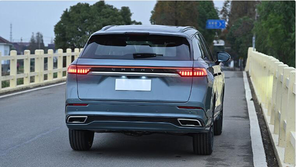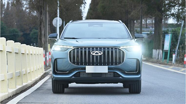 該車前臉造型設計氣勢非常強,八邊形直瀑式進氣格柵,犀利有神;搭配精致鍍鉻裝飾,盡顯硬朗與震撼。兩側前大燈與前格柵巧妙相連,細節設計考究。全新扁平化logo是奇瑞logo煥新后首次運用,符合當下汽車界潮流,讓整車更具未來感。