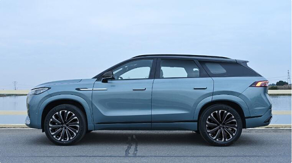 車身頂部和車窗處采用了熏黑裝飾,雙色車身設計非常醒目。此外,隱藏式門把手設計,主流高端。20寸大輪轂搭配米其林輪胎,兼具美感、靜音與性能三重優勢。