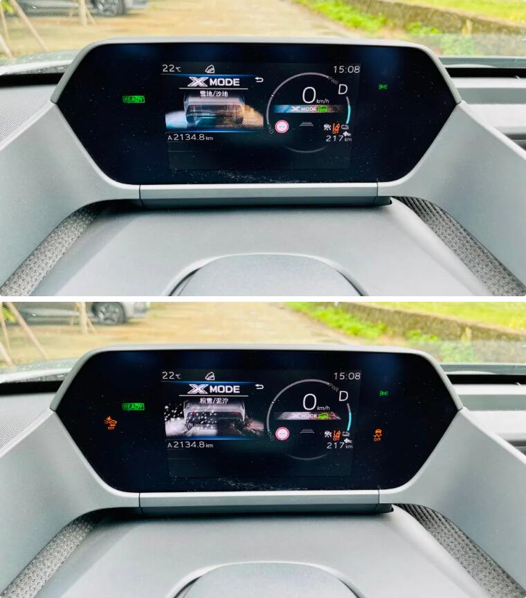 值得一提的是,X-MODE四驅越野輔助模式對越野能力的包容度是足夠的。哪怕你的駕駛經驗不夠豐富,它也提供了低速蠕行模式,共有五檔強度可調,每一檔之間的速度差大約為2km/h。你可以根據自己的需要調到合適的檔位,此時就只需握好方向盤,松開動力踏板,bZ4X便會自動前行,幫你完成每一次越野路段的通過。這個低速蠕行模式,堪稱越野版的自適應巡航。