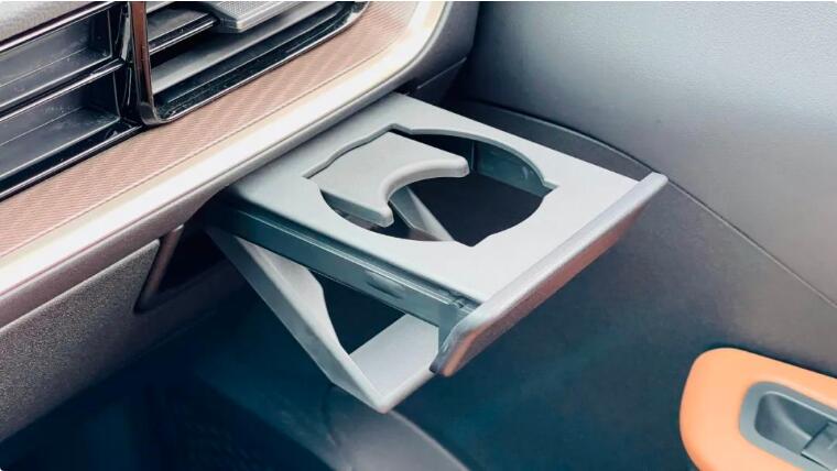 還有左右杯架,采用了隱藏式設計,平時不用就可以收回,節省空間并保持美觀。需要的時候輕按即可彈出,而且杯架正好位于出風口下方,這樣飲料冬天可加熱,夏天可制冷,真是一舉兩得。