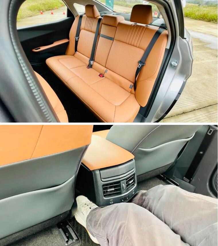 體驗試駕過這么多車型,我可以拍著胸脯說,bZ3絕對是貨真價實的5座車。這不僅是因為bZ3的后排地板采用了純平設計,還因為整個后排座椅的靠墊和坐墊都是超乎尋常的軟和厚實,坐在上面真的是坐沙發的感覺。而且后排三個坐墊連為一體,中間的乘客也能享受到和左右乘客同等的乘坐感受。更讓人意想不到的,是前排中央扶手下方采用了內凹設計,讓后排中間乘客可以非常從容舒服地將雙腳伸開,這坐姿甚至比左右乘客還要舒展。