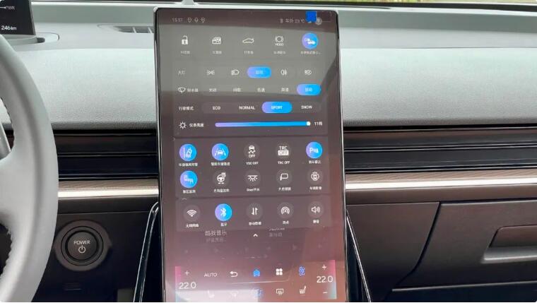 當然,bZ3上最超越我期待的是它的智能化升級。中央豎屏所搭載的這套智能車機系統,不論是操作方式還是操作邏輯,都和我們日常使用智能手機非常相似。主界面上方是地圖,下方是可以左右滑動的常用功能,最下方是空調控制區域,讓我們只需一兩步操作就能實現想要的功能,簡化了步驟,提升了效率。