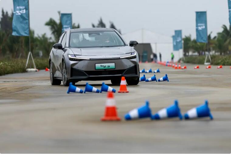 除了靜態體驗,bZ3還有一段封閉路段體驗來展示其出色的動力操控特性。首先是百公里加速和制動,整個加速過程線性不突兀,制動力的釋放也十分充分,能夠將車輛快速安全地剎停。此后是一段繞樁體驗,不論是坐在副駕還是主駕,我都能感受到bZ3扎實的底盤功力,對側傾的抑制恰到好處,低重心的特點也保證了車輛姿態的優雅從容。