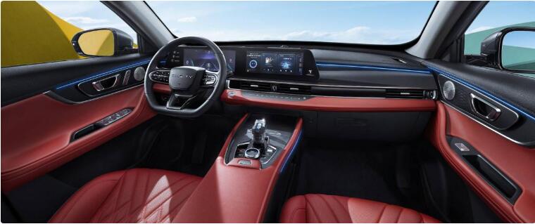 水晶刀鋒前格柵和晶彩靈眸前大燈的搭配相得益彰,彰顯用戶的時尚品味。全貫穿時尚LED尾燈極具辨識度盡顯科技前衛,拉伸車寬,更穩健更大氣,天穹懸浮式車頂采用B/C/D柱隱藏設計,在渲染車頂懸浮效果的同時更具視覺沖擊,更有神秘感,木蘭紅的內飾配色時尚感十足!