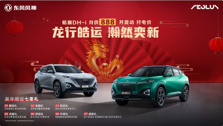 現在購買皓瀚DH-i即刻至高享0首付或0利息的金融禮,月供888元即可開回家,更有置換禮、質保禮等新年“皓”運七重大禮,東風風神誠意滿滿,只等你來!