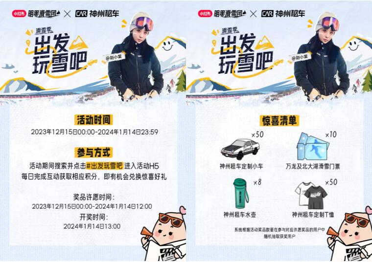 當眾多明星、KOL為租車滑雪的出行方式站臺捧場,小紅書也通過更多實質性福利邀請素人用戶關注、參與,為活動持續拉高熱度,讓租車滑雪的出行方式延伸到日常的滑雪體驗乃至貫穿冬日生活的全周期場景。