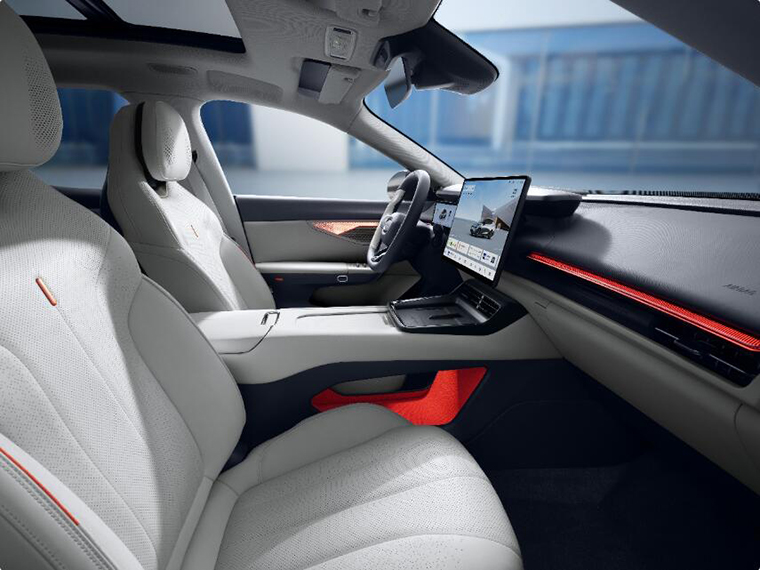 領(lǐng)克07 EM-P前后四座均采用整張NAPPA真皮一體式包裹設(shè)計,不僅與整體內(nèi)飾風(fēng)格完美匹配,且更好貼合人體曲線。同時,其包裹性和承托性表現(xiàn)出色,入座即可享受被云層包裹般的豪華舒適。