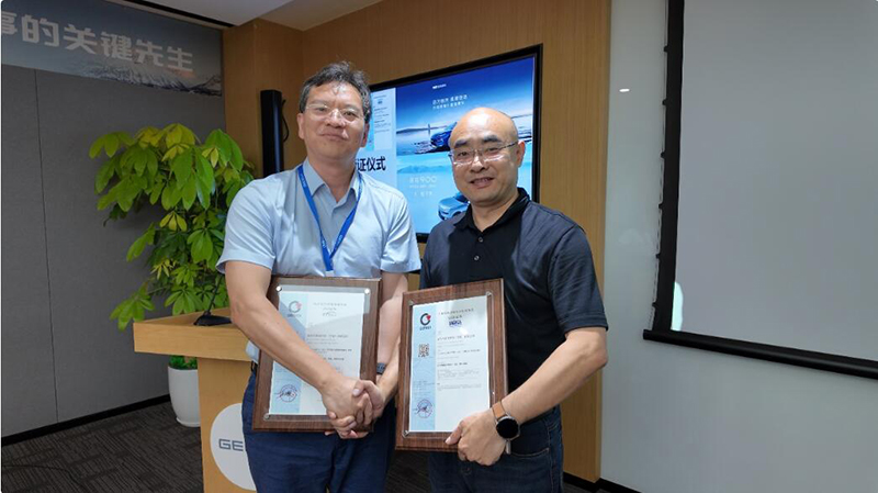 2025年6月23日,由賽寶認證中心向吉利汽車研究院授予的“汽車軟件質量管理體系標準(ASQMS)”和“汽車軟件(含 AI)質量安全管理標準(AUTOSQS)”證書頒發儀式在寧波杭州灣吉利汽車研究院舉行。