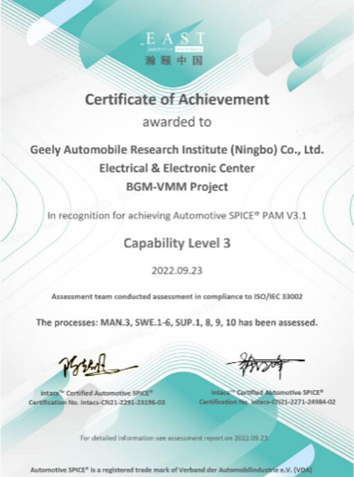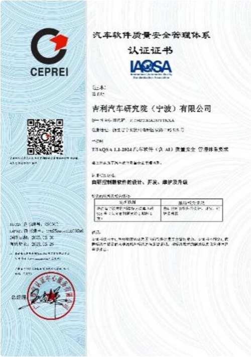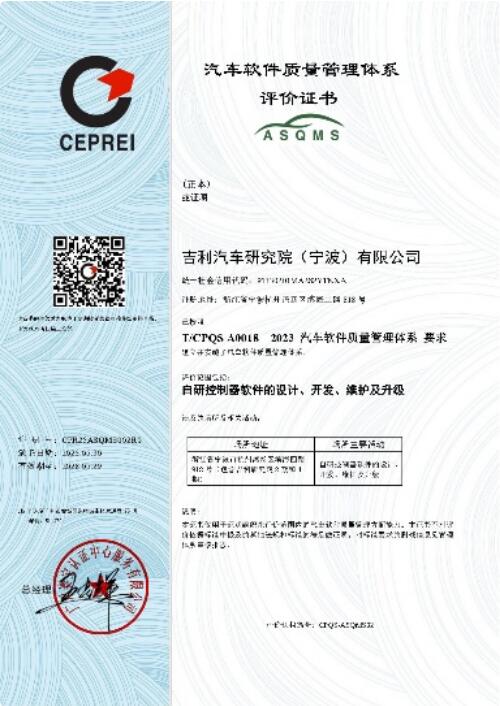 繼Automotive SPICE-CL3認證,吉利汽車又斬獲AUTOSQS與ASQMS雙認證