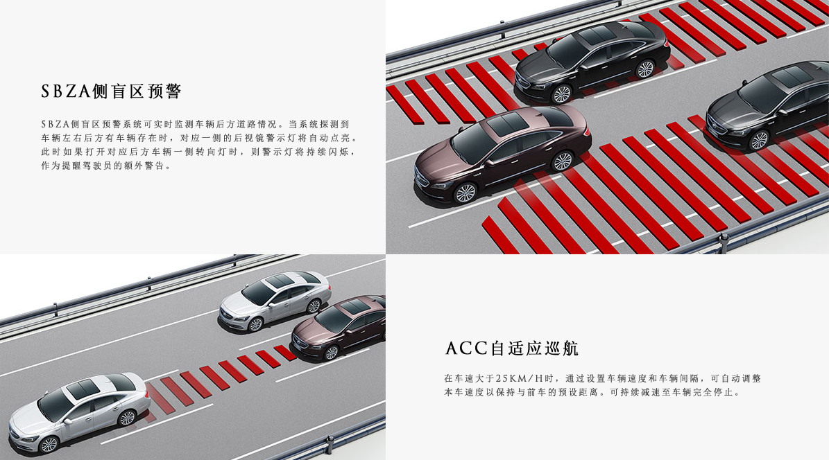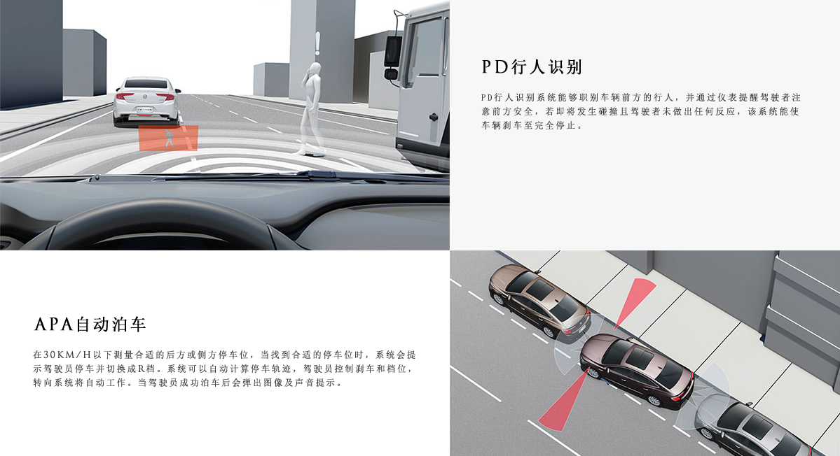 全新一代君越配備了別克迄今功能最全的智慧安全科技,其布有8條車載總線的全新一代電氣架構(gòu)系統(tǒng)為此提供了基礎(chǔ)保障。新一代的別克智慧安全系統(tǒng)在上代車型的7項(xiàng)功能基礎(chǔ)上新增5項(xiàng)功能,包括首次引入的PD行人識別/保護(hù),以及LKA 車道保持、FDI 前車距離提示、HBA 遠(yuǎn)近光燈自動開關(guān)控制和APA 自動泊車功能。此外新車還首次配備了百萬像素前攝像頭、新一代長距離雷達(dá),并全面升級了傳感器及軟件系統(tǒng),為用戶帶來前瞻科技體驗(yàn),以及更加周全的保護(hù)。