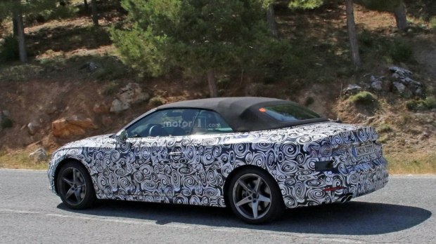 日前,外媒捕獲到了一組新一代奧迪A5敞篷版車型的路試諜照,新車在造型上更加精致,凸顯了時尚感與運動感,并或將在今年年底全球首發。
