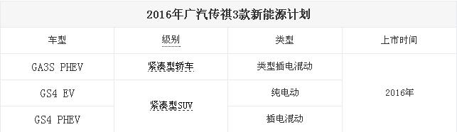 根據廣汽傳祺此前公布的新能源規劃,到2020年新能源汽車年銷量將達到10-20萬規模。要完成這一目標,新車投放將成為關鍵。吳松表示:“發展新能源汽車是廣汽未來的核心戰略,也是傳祺品牌的重中之重。”2016年廣汽傳祺將率先推出GA3S PHEV、GS4 EV以及GS4 PHEV三款新能源車型。