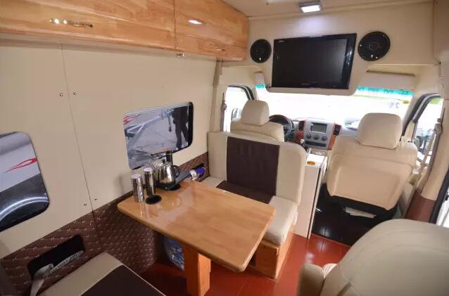 東風御風房車內裝極為考究,大尺寸液晶顯示屏、寬敞的L型沙發(fā)、舒適的床鋪、專用式的一體化灶具、整體式衛(wèi)生間設計,3G無線路由器等,讓旅行不僅充滿生活的氣息,更充滿智慧科技帶來的無限魅力。