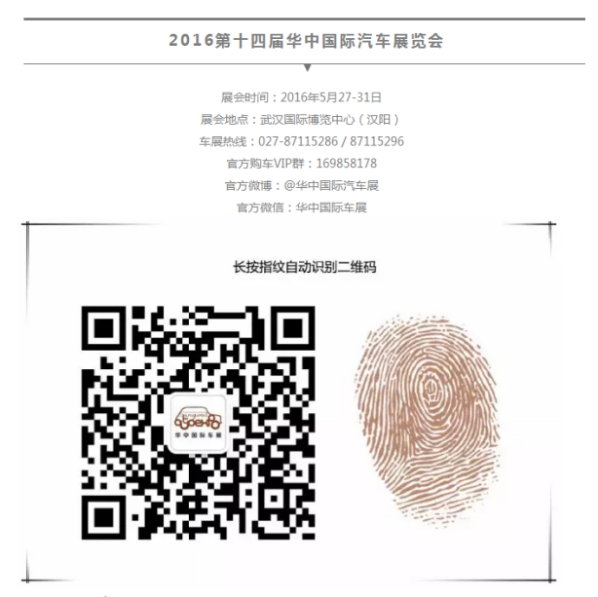 來車展,玩潮流。華中車展,五月綻放!2016年5月27-31,武漢國際博覽中心,第十四屆華中國際汽車展覽會與您相約,呈現(xiàn)一場全民參與、創(chuàng)意無限、智能高效的汽車文化嘉年華。華中車展一元搶票活動已正式開啟,敬請關(guān)注“華中國際車展”官方微信參與搶票。